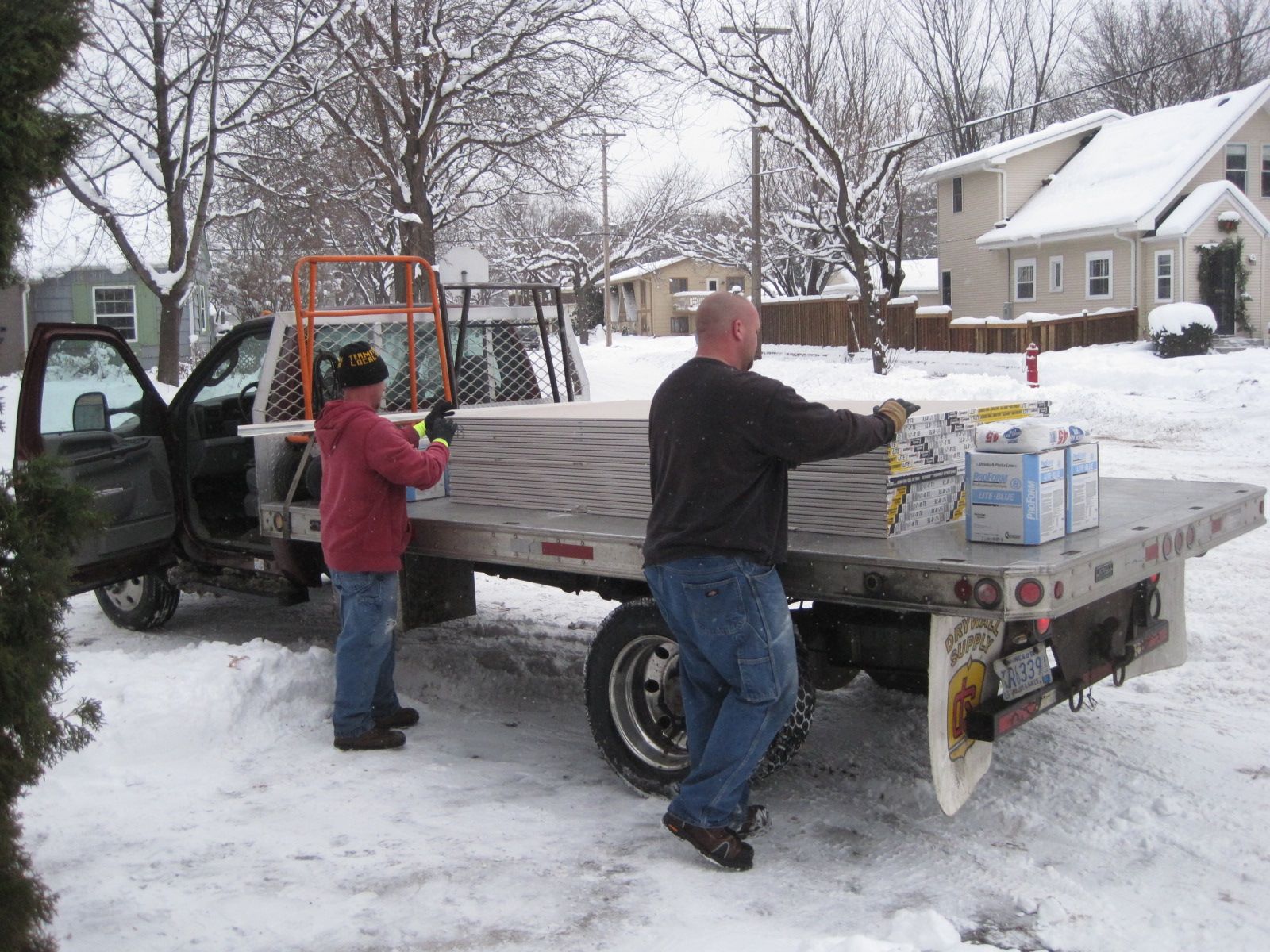 Sheet rock panels and materials are delivered to TOH.  This is the beginning of a difficult but necessary step in the renovation.